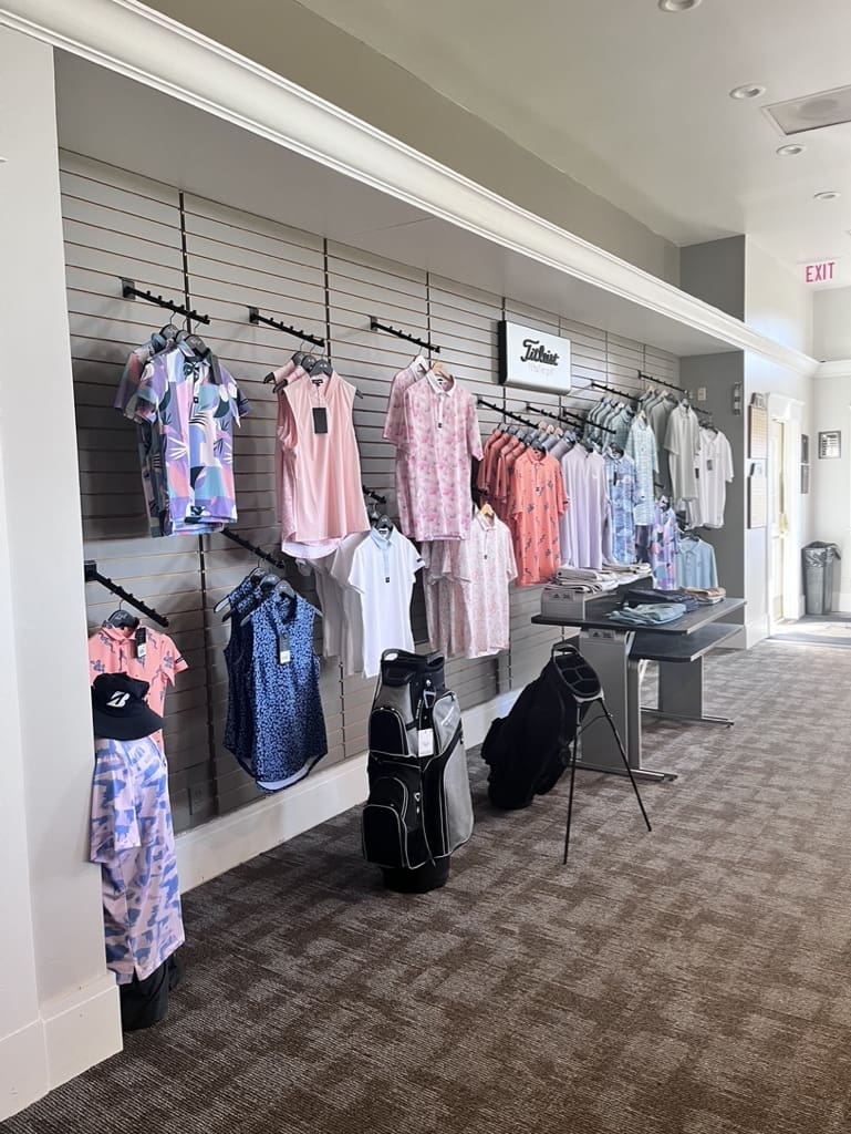 Our pro shop features several brands including Bad Birdie, Good Good, Linksoul, Nike, and Travis Mathew clothing and footwear.